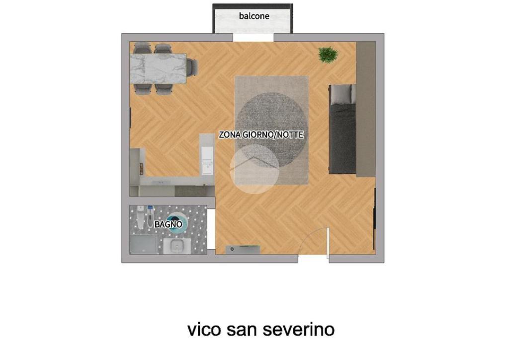L'appartamento si trova ad un piano ammezzato in uno stabile d'epoca in tufo con una superficie di circa 22 mq. La distribuzione interna è la seguente: ingresso, cucinotto, angolo giorno, angolo notte e bagno. Ottima l'esposizione con balcone che affaccia sulle caratteristiche scale di Vico San Severino, inoltre è dotato di impianto di condizionamento caldo/freddo.